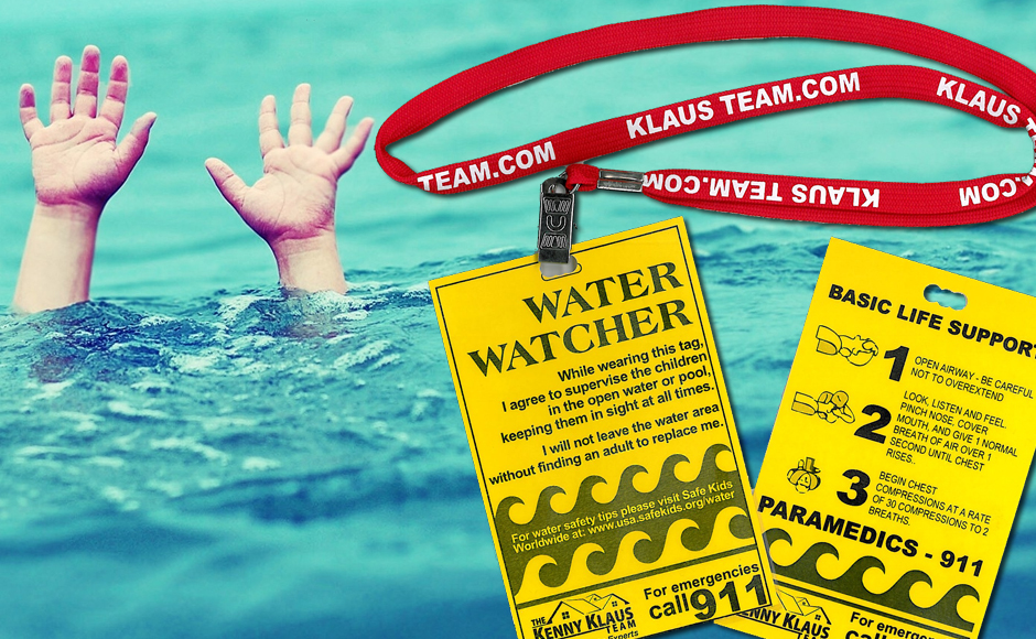 One successful technique, especially for parties and get-togethers, is to have a designated Water Watcher. For an agreed-upon period of time such as twenty minutes, one adult takes on the role of Water Watcher, avoiding adult conversations, putting down the phone, and keeping eyes roaming the water. After their “shift,” they then hand off the duty to another adult in the same manner. Some local organizations such as The Kenny Klaus Team provide “Water Watcher” tags so party hosts can keep track of who is “on duty.”