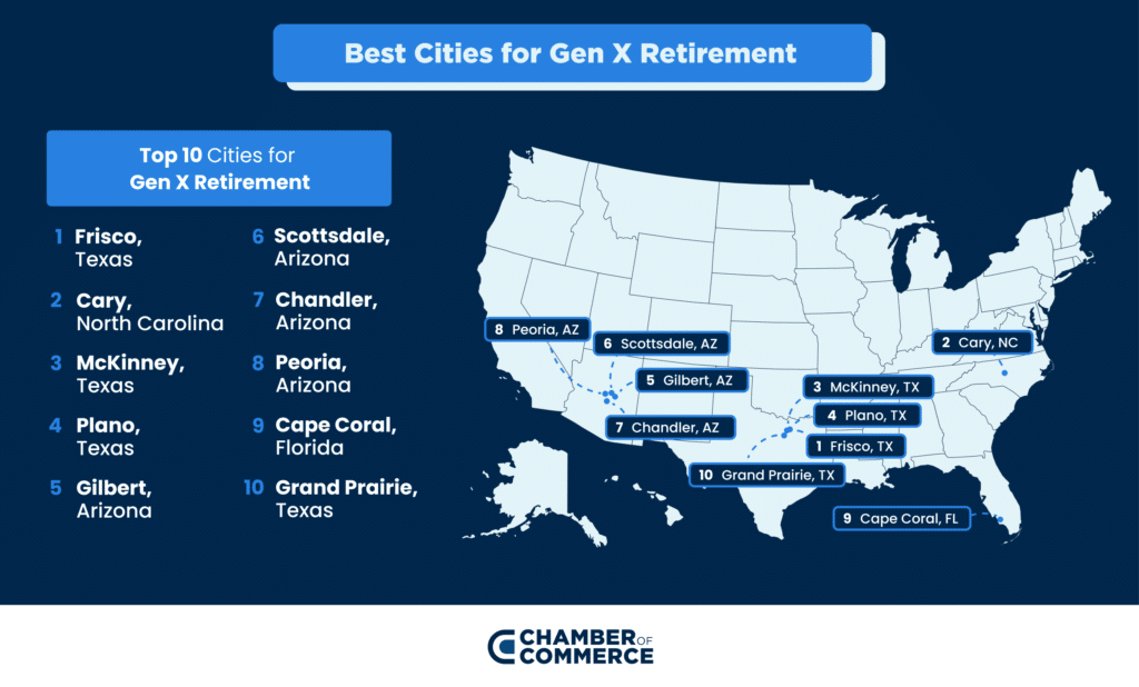 With cities in Texas, Arizona, and Florida dominating the list of the most ideal places for Gen Xers to retire, the Phoenix area stands out as a particularly attractive region. The Dallas-Fort Worth suburb of Frisco, Texas, topped the list overall, largely due to its high percentage of Gen X residents and a life expectancy of 81.6 years, which is notably higher than the average of 78.5 years among the cities analyzed.
