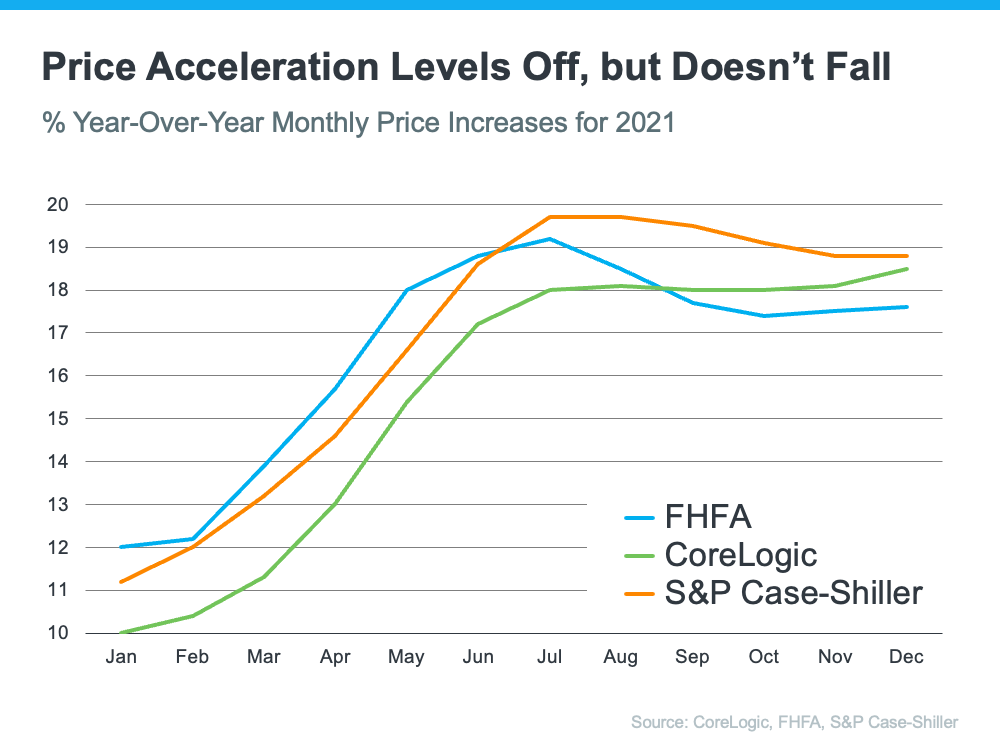 Many analysts projected home price appreciation would slow dramatically in the fall of 2021 and then continue to soften throughout 2022. So far, that hasn’t happened. The major price indices are all revealing ongoing double-digit price appreciation. Here’s a look at their reports on year-over-year price appreciation for December: