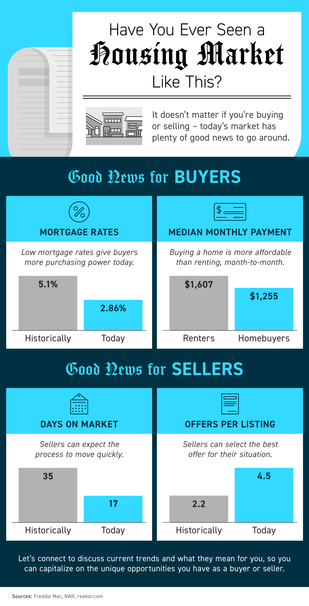 - Whether you’re buying or selling – today’s housing market has plenty of good news to go around.