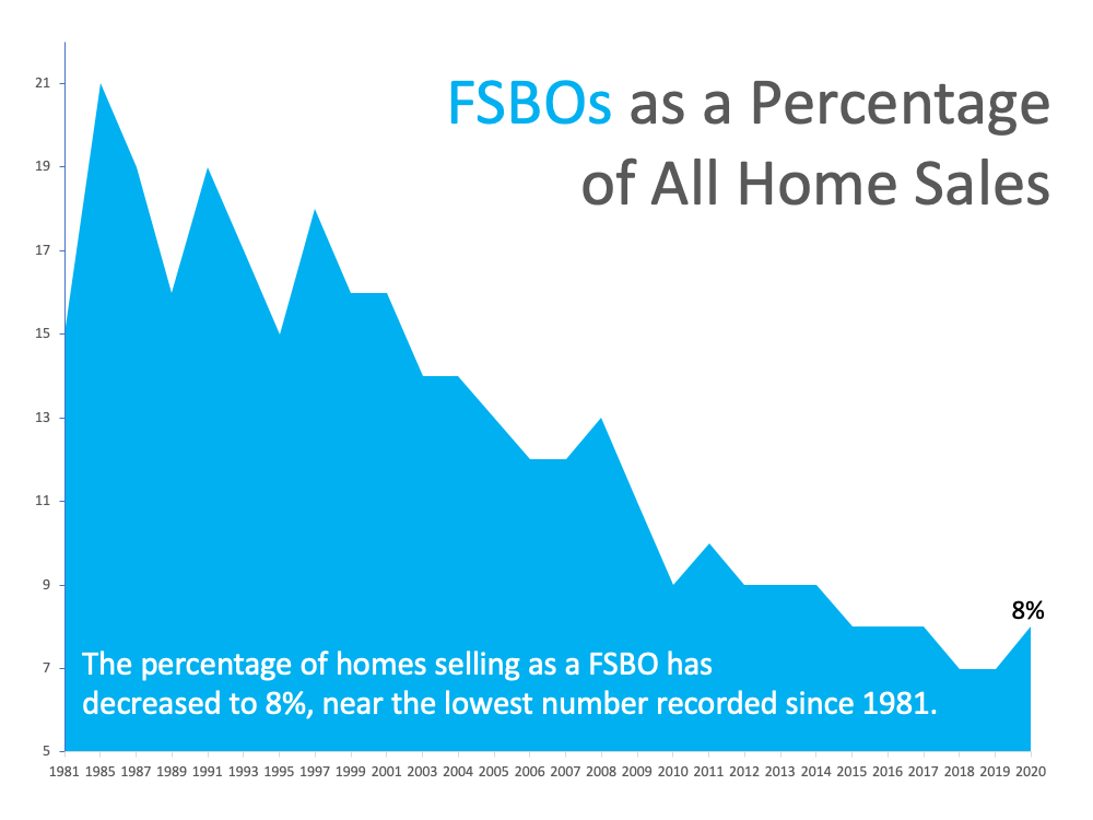 Selling a house is a time-consuming process – especially if you decide to do it on your own, known as a For Sale By Owner (FSBO). From conducting market research to reviewing legal documents, handling negotiations, and more, it’s an involved and highly detailed process that requires a lot of expertise to navigate effectively. That’s one of the reasons why the percentage of people selling their own house has declined from 19% to 8% (See graph below):To help you understand just how much time and effort it takes to sell on your own, here’s a look at a few of the things you need to think about before putting that “For Sale” sign up in your yard.