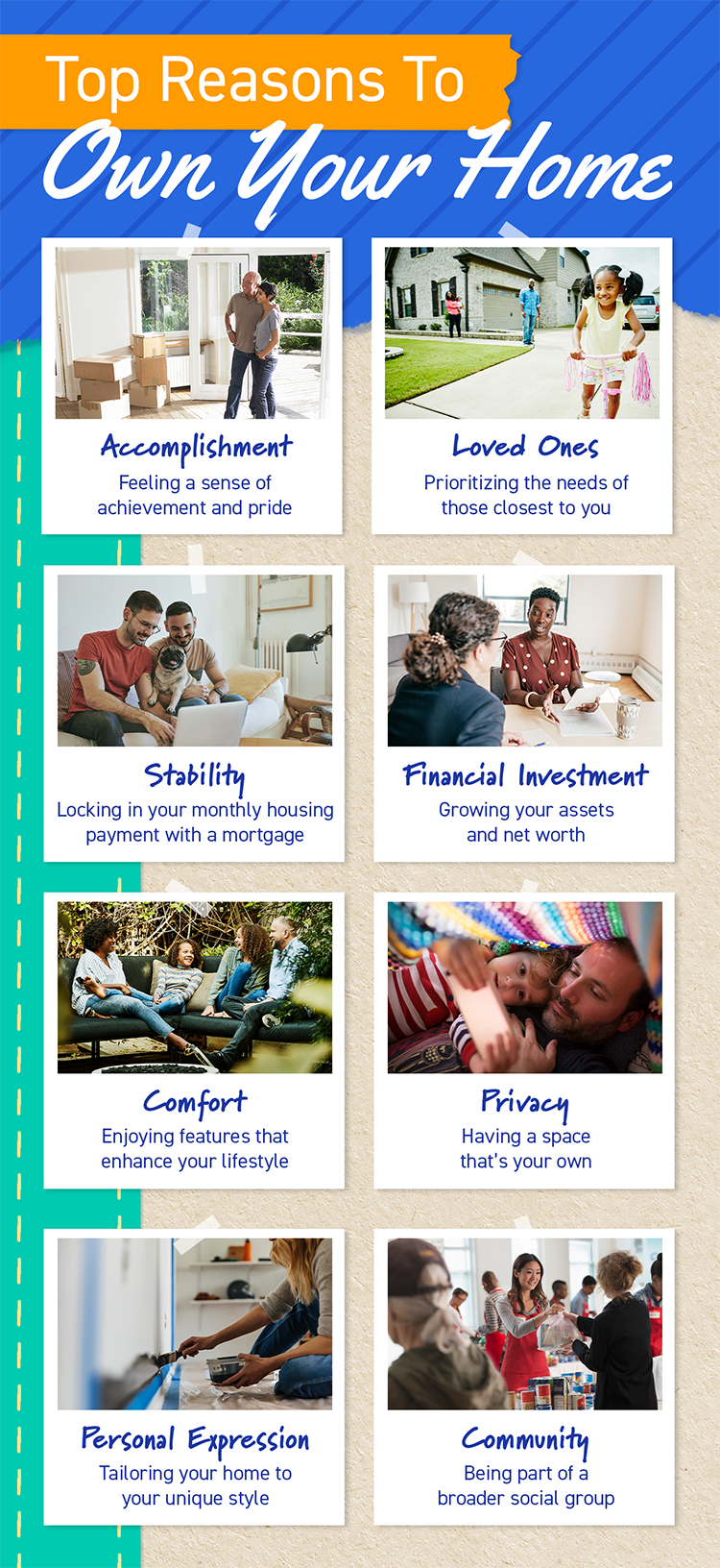 - If you’re considering homeownership, know that it can give you privacy, comfort, and a place to express yourself. It can also provide financial stability and help you grow your net worth.