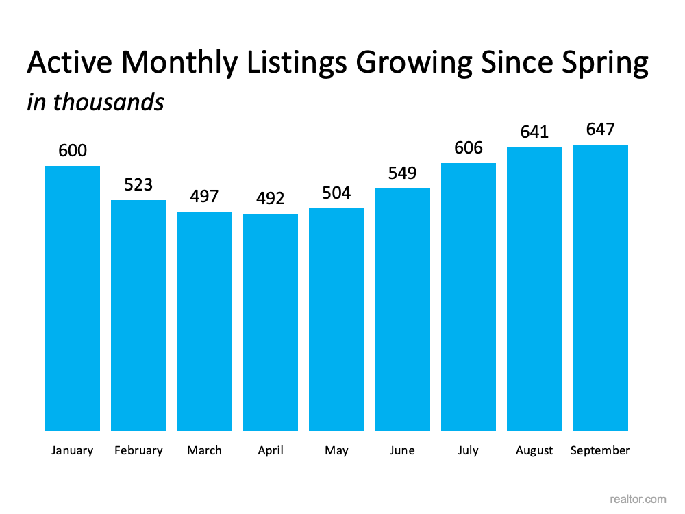 If we look at the active monthly listings for 2021 (shown in the chart below), we’ll see that the number of homes on the market has increased fairly steadily since spring this year. The realtor.com data shows we’re still seeing an increase in active inventory month-over-month. While that gain is a bit smaller month-to-month (see August to September in the chart), September numbers are still up from the month prior.The important takeaway here is the latest monthly numbers show growth. At the end of September, buyers had more options to pick from than they did this spring. That’s encouraging for buyers who may have paused their search months ago because they had trouble finding a home. Danielle Hale, Chief Economist at realtor.com, sums this up nicely:
